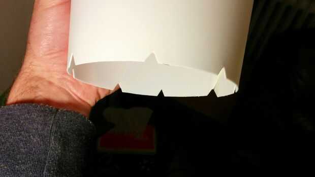 Cuando todo el pegamento se seca finalmente cortar pequeños triángulos en la parte inferior de la sombrilla para que el agua verter fácilmente hacia fuera, hice corte 8 distribuido uniformemente alrededor.