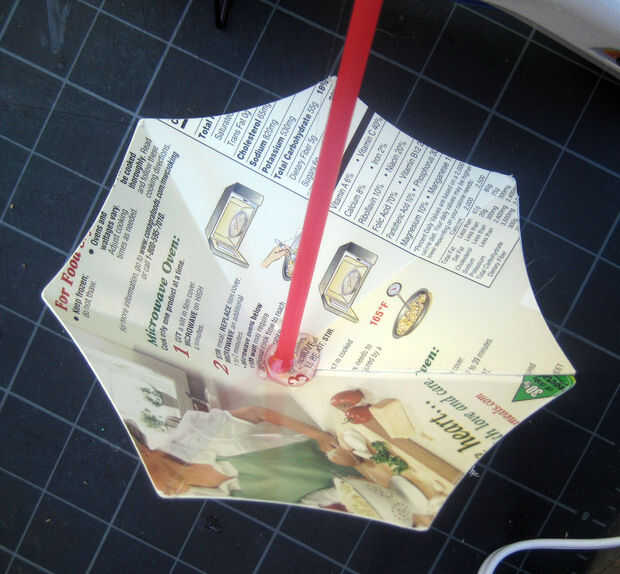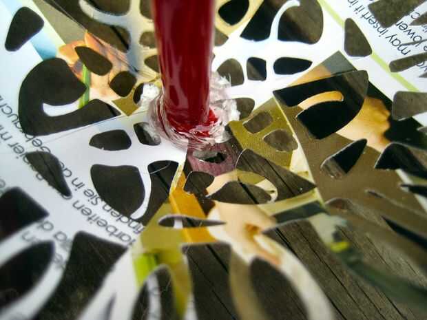 Para el patrón de paraguas adornados, ayuda a tener una pequeña tapa en la parte superior para evitar que el pegamento de todo.