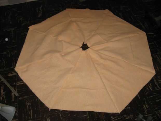 Una vez que tenga la forma de octágono (8 paneles tipo para este paraguas) cosida se necesita crear un dobladillo de 1/2 pulgada en el perímetro y los bordes interiores de la cabina.