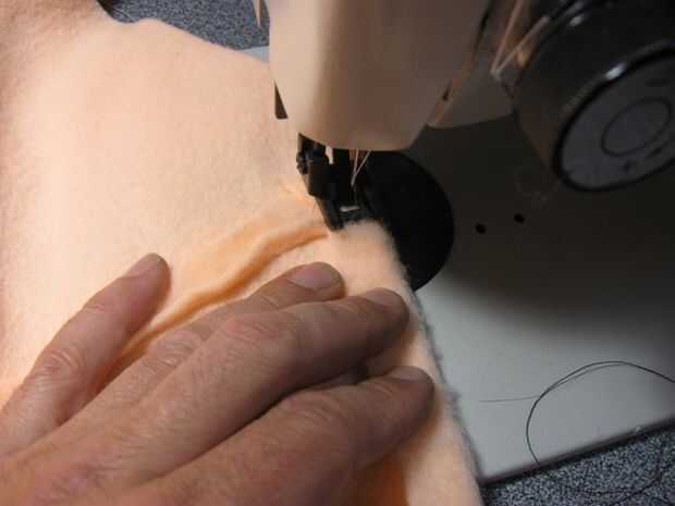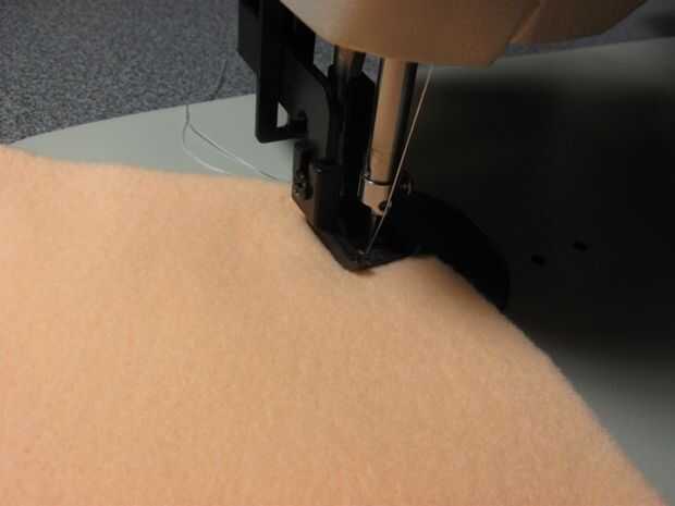 Coser un borde de 2 piezas juntas. Se repetirá esto hasta que todas las piezas se unen entre sí.