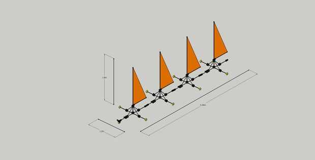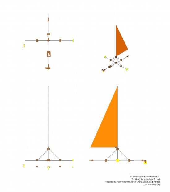 Windtrain es un vehículo cambia de forma modular que pretende ser capaz de llevar las cosas pesadas con muy poca energía, usando energía eólica. Un híbrido de un tren y un velero de algún tipo. Ya se han construido varias versiones de la WindTrain para demostrar el concepto de " proteinuria": Windtrain " Mister T", " Báltico", " cara o Cruz", " Ace", " MakerCamp", "Pedos flamencos" (último documentado en Instructables). Esta es la versión G4B Escuela puerto de WindTrain, lo llamado "Paraguas" - inspirado en el accesorio doméstico. Es controlado por radio. Consta de 4 módulos para una longitud total de 536cm, ancho 126cm, altura 180cm. Es un proyecto educativo para introducir a los estudiantes el uso de herramientas, fabricación, colaboración a las máquinas eólicas de prototipo. Vienen más prototipos. Este proyecto fue desarrollado en MakerBay, Hong Kong Makerspace e impartido por Cesar Jung-Harada, Harry Churchill y Edward Ip Chi Ching con los profesores de la escuela de puerto. La presentación introductoria por Cesar aquí es como un google diapositivas.