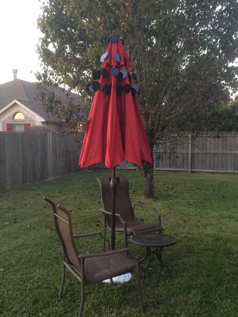 4. cuando el dispositivo se implementa sobre un paraguas bistro, todo está bien hasta que cierre la sombrilla. Algunas sombrillas son puntiagudos en la parte superior y algunos (como el mío) tienen un disco de plástico. En sombrillas con puntas puntiagudas, necesito alguna manera para unir la parte superior de la cubierta Solar para que no sólo se deslice hasta el suelo. En los paraguas, necesito averiguar de alguna manera para mantener el dispositivo en su lugar para que no se enrede cuando se vuelve a abrir el paraguas.