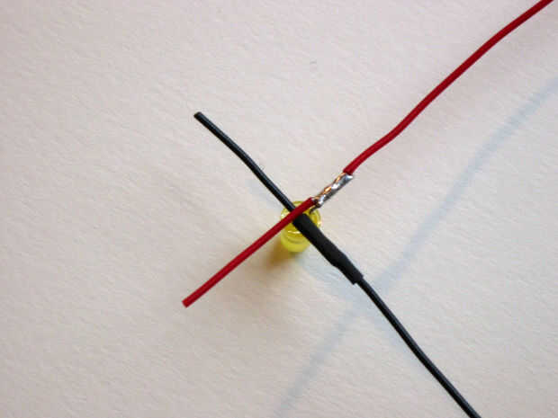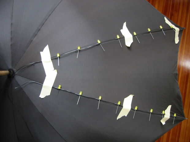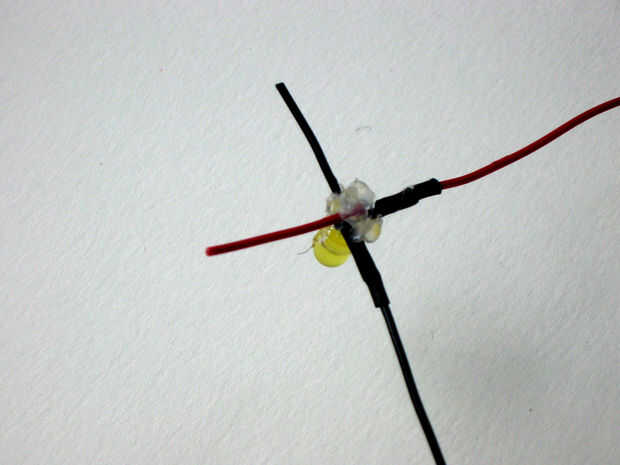 Pegamento caliente los cables en estas uniones para garantizar el LED lleva de tensión y rotura. Esto es muy importante ya que pone a trabajar la matriz en el paraguas de un considerablemente la cantidad de estrés en las articulaciones.