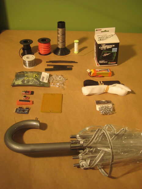 - Hilo de coser pesada: utilicé un hilo de coser pesada para sujetar placas de circuito impreso a la sombrilla. He intentado usando hilos de plástico (como sedal fino) pero no ha funcionado bien para mí.