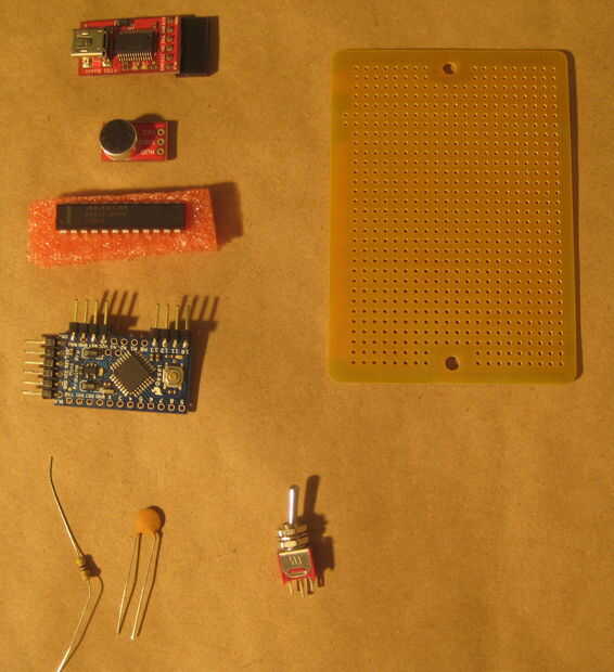 - Arduino mini pro 328 5V/16 MHz: demostrados aquí con las cabeceras ya conectados. Arduino Lilypad también habría funcionado bien. El mini pro y el Lilypad son tan pequeñas, parcialmente porque excluyen a los circuitos USB es necesario hablar con el ordenador, así que algo así como la Junta FTDI abajo también es necesario con estas placas para conectar arduino a su co