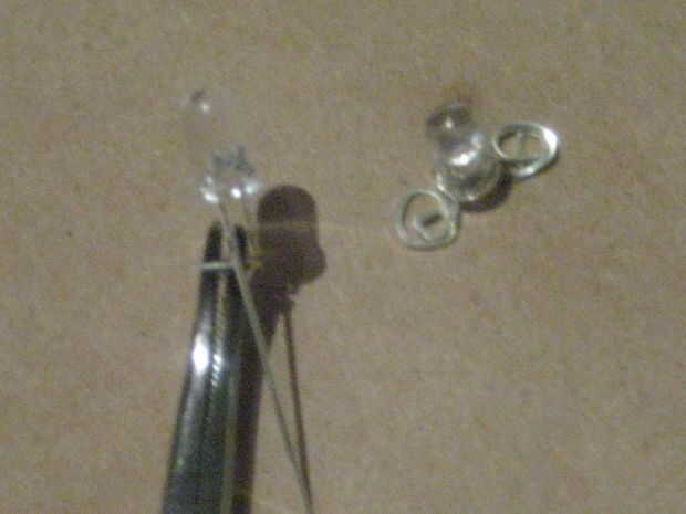 Después de cada LED es empujado a través del plástico, utilice unas pinzas de nariz de aguja o pinzas para girar cada pierna a un círculo (ver imagen), asegurándose de que las piernas no toquen entre sí
