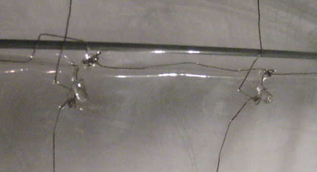 A continuación, utilizar el hilo conductor, coser todos los ánodos (pata más larga) en cada fila.