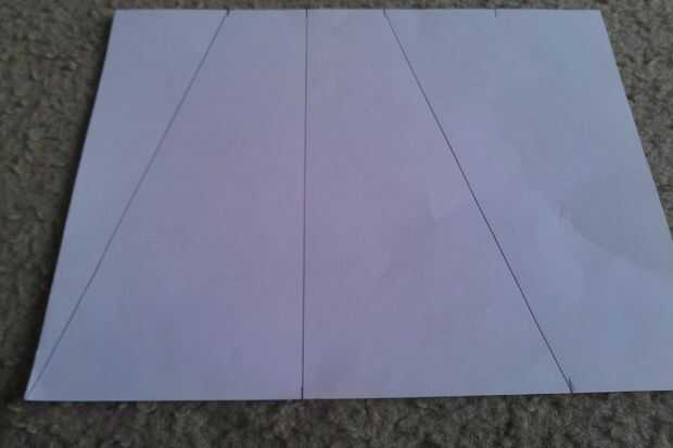 Dibujar una línea recta conectando ambas marcas de 4,25 pulgadas. A continuación, dibuje en líneas de las dos marcas centrales en la parte superior a la parte inferior como se muestra. A continuación, recorta la forma a lo largo de las líneas laterales y doblar por la mitad a lo largo de la línea central. Asegúrese de que usted sólo lo dobla por la mitad una manera!!!