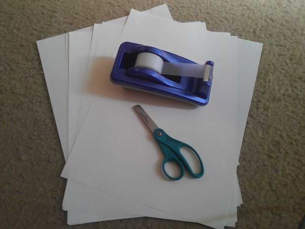 Necesita 8 pedazos de papel, tijeras y cinta.