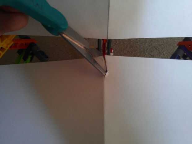 Línea hasta los pliegues y coloque el papel en el paraguas. Luego, corte una abertura en la parte superior del papel a lo largo del pliegue.
