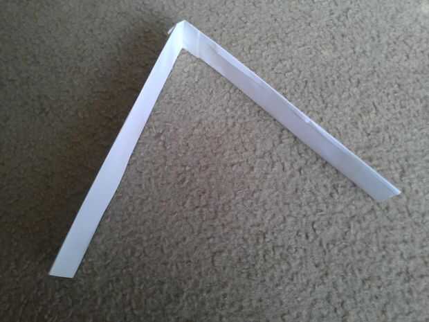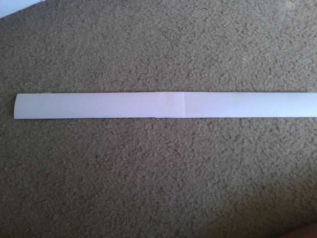 Tomar dos tiras de papel y cinta adhesiva para formar una tira de tamaño medio. Doblar por la mitad.