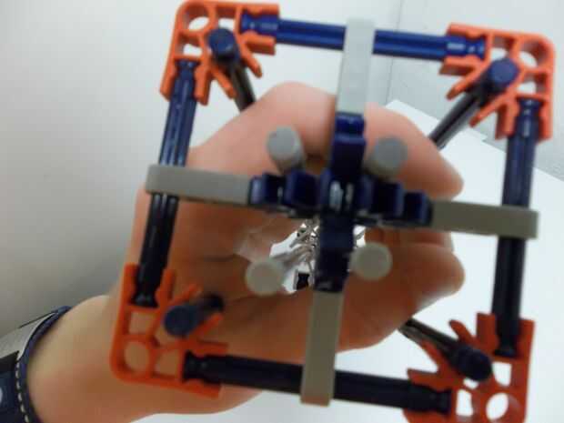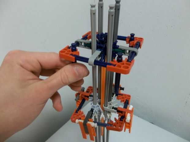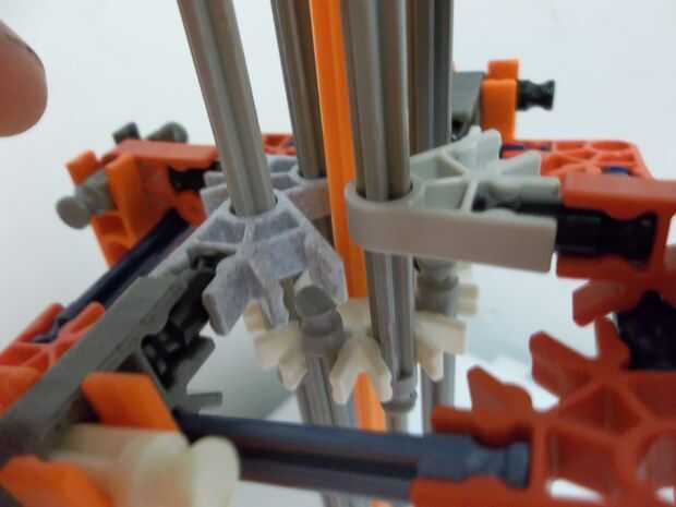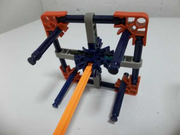 Esta es la parte que se mueve para abrir y cerrar el paraguas. Asegúrese de seguir las imágenes y deje que se deslice los conectores azules por la mitad de las barras grises, no unido a cualquier cosa. Se une a la primera parte de la diapositiva utilizando las varillas azules que están ajustadas a los conectores rojo parte 2.