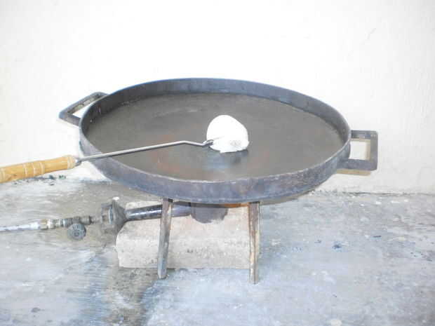 También se podría utilizar el fondo de un tanque de gas, una sartén de hierro fundido grande o un wok de algunas clases.