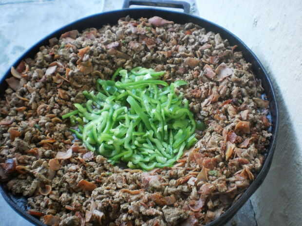 Una vez que las carnes se hacen vamos a añadir las verduras, primero el pimiento, los cocción durante unos quince minutos en el centro de las carnes, después de que el centro va las cebollas y el nuevo cocinero de alrededor de 15 y mezclan más mezcla minutos va para arriba, y en los tomates, después de que los tomates se han mezclado que vas a cocinar a fuego lento la discada todo durante 20 minutos o más , y está listo para comer, realmente cuando hago esto, la hornilla está en posición todo el tiempo, así como tiempo pasa y todo simmering/reducción mantiene mejorando el sabor.