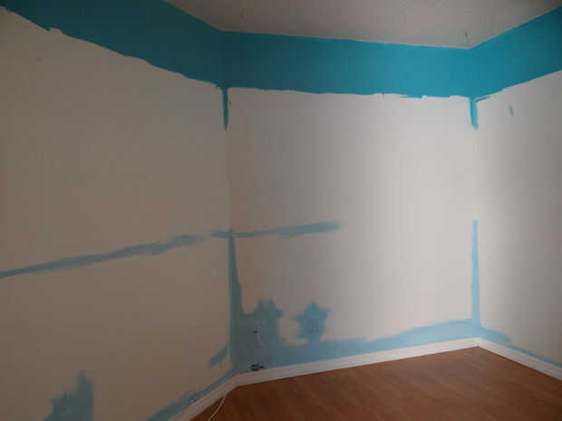Luego corte a lo largo de la moldura con el color de fondo y a lo largo del techo con el color superior, asegurándose de llegar a las esquinas y deje que se seque.