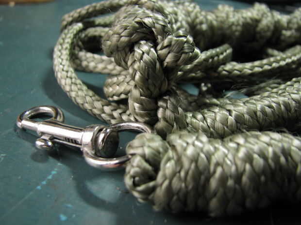 Paracord muy simple perro correa/el plomo de hecho con el nudo de la Cobra. El mango es simplemente un bucle que tejió juntos. Solo hay 2 cables en este sentido, no hay fusión. Creo que hace de un pedazo más fuerte. No muy seguro pero creo cerca de 8