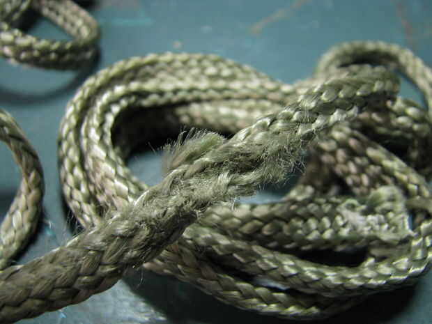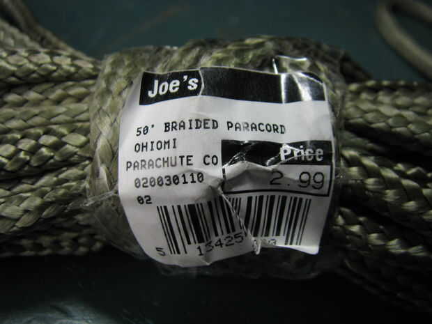 Salí y compré un paquete que en realidad dijo que era 50' (15.24 m) de paracord trenzado ya que no pude comprar una cantidad más pequeña de la corte. Medí y tenía bastante un poco más que eso, tenía aproximadamente 75' de él.