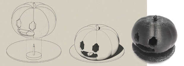 Usando el plugin Grasshopper para Rhino 3D, un guión fue escrito para tomar un .jpeg de una cara de dibujos animados y el mapa que se enfrentan a la superficie de una calabaza por el usuario controla parámetros. Estos parámetros incluyen: forma y tamaño, segmentos de calabaza, de forma de polígono que produce el contorno de la cara, espesor de calabaza (importante para la impresión 3D) y por supuesto la imagen .jpeg asignadas que indica al programa de las formas para cortar el cuerpo de la calabaza del tallo. Este proceso también podría ser inverso diseñado para tener una cara de la calabaza que se conoce para producir una sombra de miedo sobre una superficie al lado de la calabaza.