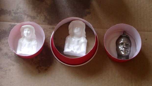 recibí los tres objetos de Shapeways. De la los materiales, el acero inoxidable y Nylon 12 funcionó muy bien. La cerámica esmaltada no tiene resolución lo bastante alta para este proyecto. Se muestra de izquierda a derecha en la foto son nylon, cerámica y acero inoxidable.