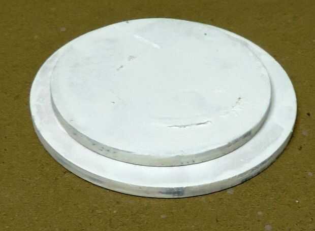 Cuando ellos círculos han sido cortadas, se puede pegar junto con el círculo más pequeño en la parte inferior del círculo más grande centrado con cuidado el círculo más pequeño.