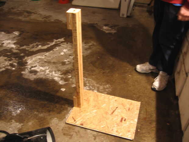a continuación tomar los bloques (cualquier tamaño) y atornillar a la parte superior e inferior (en la parte posterior) del poste de 3 pies en la parte posterior. Después la atornillan a la base.