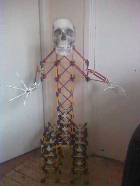 El marco se hace del juego maravilloso cronstruction conocido como k'nex... im miedo de tiene suficientes detalles sobre el marco: S im sorry... pero la mayor parte de la estructura es generalmente una torre simplemente de apoyar la parte superior del cuerpo y la cabeza. También asegúrese de que la base es más ancha que la torre del cuerpo, esto ayuda a darle más estabilidad.