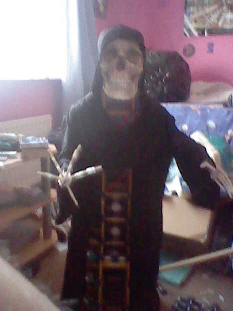 Salí y compré uno barato en una tienda de disfraces para £2,99, pero realmente se puede usar bin negro bolsas así
