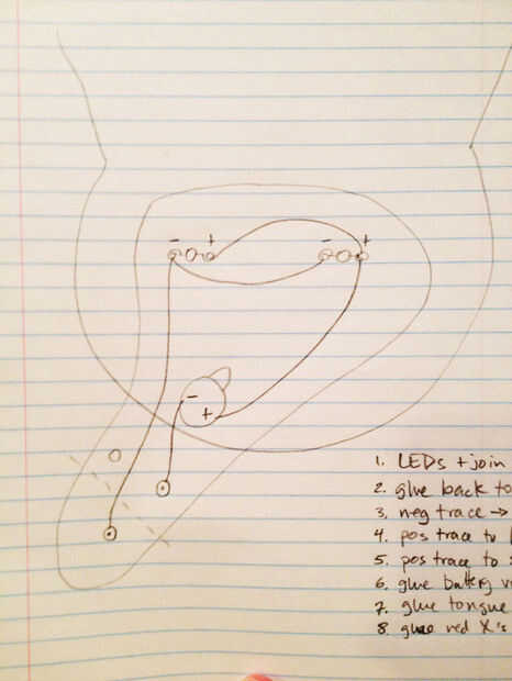 - dos LEDs (yo a través del agujero pero Duns funcionaría si la soldadura de un cordón a los hilos para coser a través de la dirección (URL))