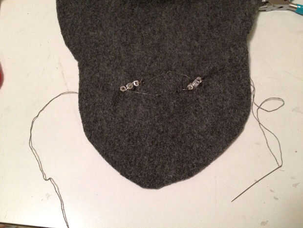 Punta para coser los "rastros": conseguir el hilo conductor incrustado bajo la tela tanto como sea posible, para minimizar la posibilidad de cortocircuitos.