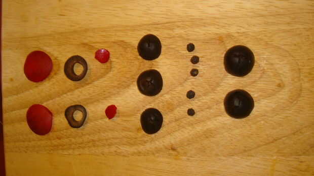 Los granos de pimienta son para las tallas en el extremo de su cuerpo.