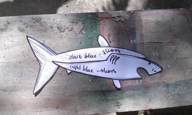 corté mi patrón en dos piezas, sólo porque pienso que es más interesante de esta forma, puedo poner dos colores diferentes y hacerlo más interesante, en cambio todavía puede seguir adelante y hacer un tiburón de una paz!