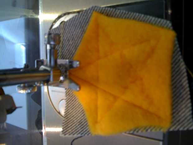 Coser alrededor de los bordes un par de veces más y luego cortar el borde línea de costura. No cortar en esta costura aunque!