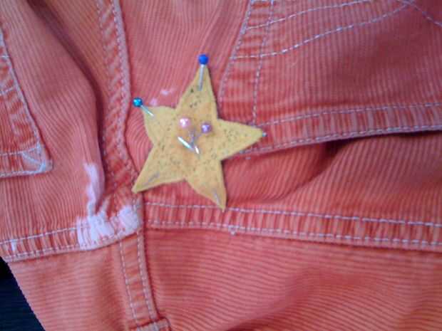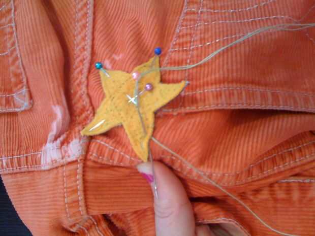 Simplemente utilicé una puntada corta bordes con mi hilo de contraste pesado. Un dedal era vital para algunas de las capas más gruesas! Hice un par de las primeras puntadas dos veces tan lejos aparte como el resto, para poder rellenarlos el final y tener una buena cantidad de traslapo (ver última foto).