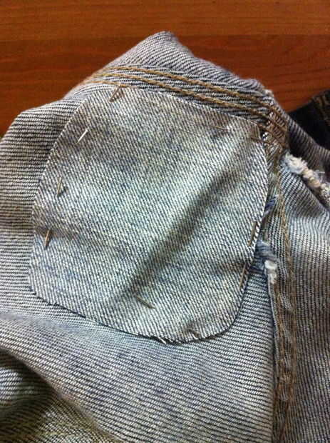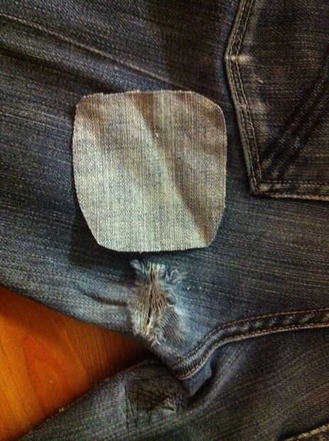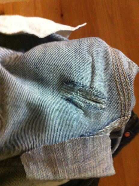 Vuelva los jeans parcialmente para que puedas ver la parte que necesita parches.