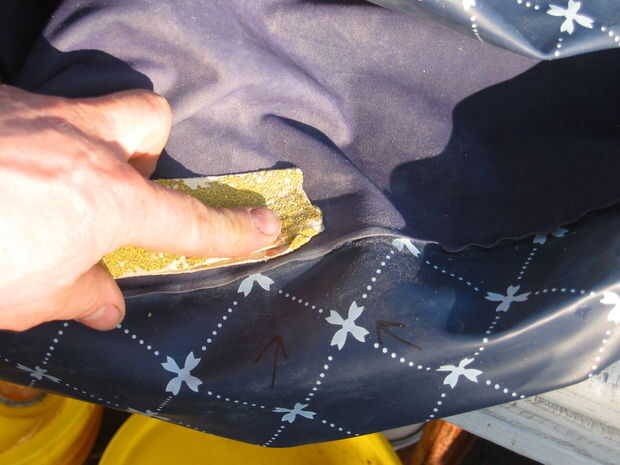 No necesito eliminar grasa porque esto es viejo lo suficientemente que el aceite de la fabricación ha pasado ya. Agua escota hacia fuera en ella cuando lo tenía en la laguna en busca de las burbujas.