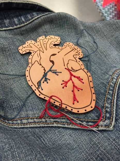Una vez cortadas, que desea coser cualquier bit que se encuentran dentro del perímetro del parche. En este ejemplo, he acabado hasta las venas del corazón con hilo. Usted puede conseguir el lujo con sus técnicas de costura o puede mantenerlo real simple. No coser real experiencia necesaria.
