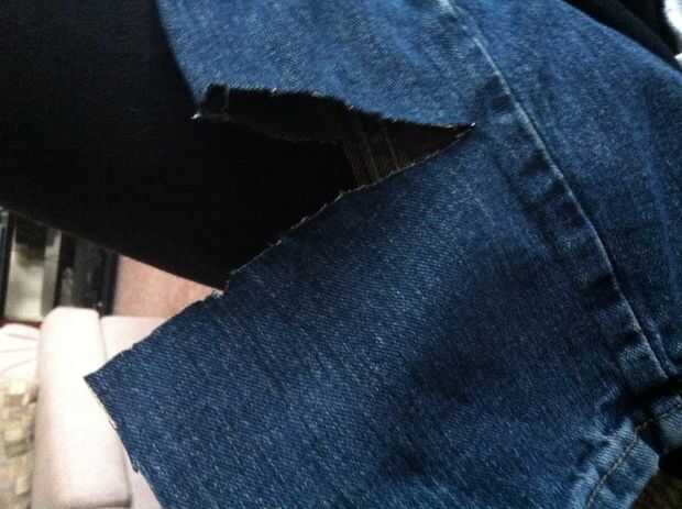 Esto es donde usted sacrificar un viejo par de pantalones vaqueros para hacer material de parche. Me ha pasado que los pantalones vaqueros que eran demasiado pequeños para mí todo eso era el exacto mismo material que los pantalones vaqueros que quería ahorrar, así que explotó las tijeras y me hizo unos pocos pies cuadrados de material de parche 3 pulgadas.