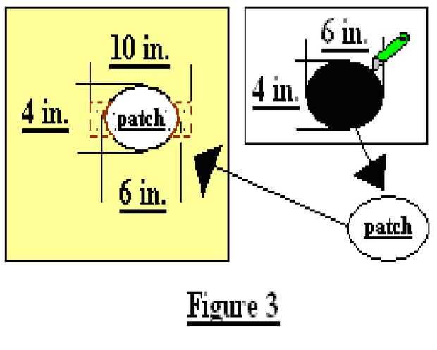 Corte el parche de la pared y sujetar el agujero de la pared (Figura 3).
