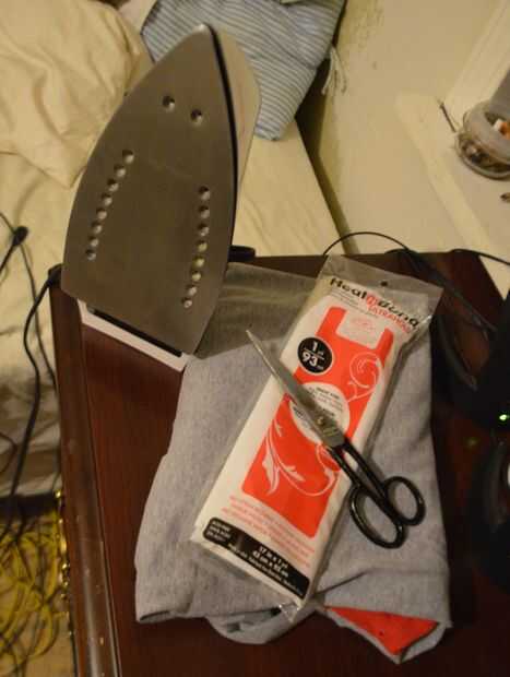 Recoger herramientas y suministros---hierro heatnbond, tijeras, parche y algo para hierro en