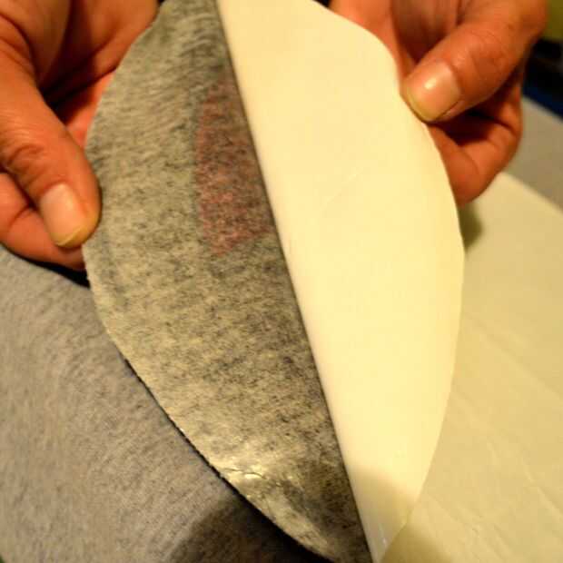 2. corta un parche de enlace n de calor, un poco más grande que el parche de tela.