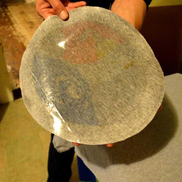 -Colocar y sujetar el hierro en el revestimiento de papel durante 2 segundos. Repita hasta que toda la superficie está en condiciones de servidumbre. Deje que se enfríe.