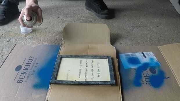 Como en mi otro proyecto marco que imprimí en una hoja de papel de transferencia para que puedo tomar de la impresora y con la tinta aún húmeda, presionar sobre la madera contrachapada. Super fácil. Después de eso tuve que recortar los bordes de la madera un poco para que se ajuste en la parte trasera del marco.