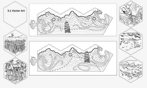 Hacer dos mitades de un hexágono que caben dentro del 'hexágono más grande' del conjunto completo tablero. Este diseño se utilizará para el respaldo de chapa metálica.