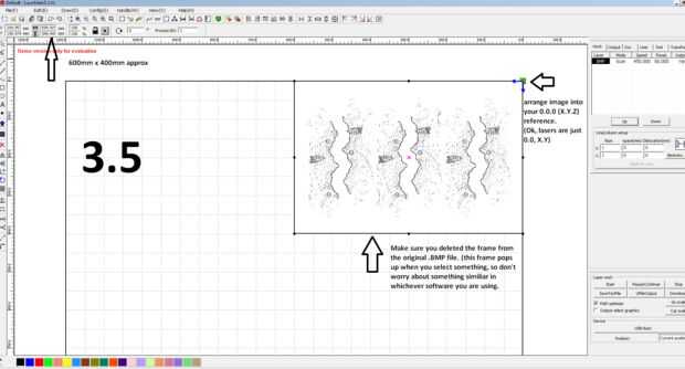 Al importar el archivo, asegúrese de que reducir la imagen para que sea el contorno rectangular original mencionado en el punto 3.1. Mover la imagen que está ubicado en la posición 0,0,0 de la máquina láser.
