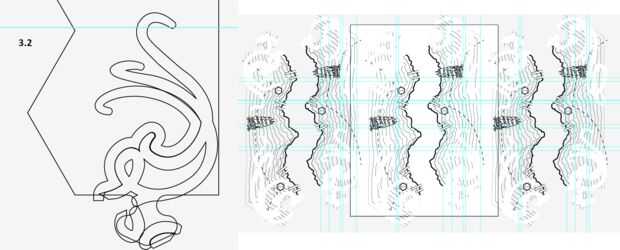 Hacer los vectores que hace tus motivos en relieve blanco. Si eres talla V con su molino CNC que vas a tener que ampliar la parte 'blanca' y la máscara de su entorno basado en la altura será su patrón levantado y el ángulo de la punta de la V. En este proyecto he fresado de 3mm de profundidad, y el pedacito de V era de 60 grados. Por lo que la base tenía que ser de 1,73 mm (TAN (30) * 3 mm = 1.73). Hice el desplazamiento de 1,75 mm de máscara desde el vector original. Figura 3.2