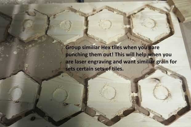 Material soltado 7,8) y pop a casillas a mano. Puede utilizar un cuchillo para cortar las pestañas si quieres o solo empujarlos hacia fuera con los pulgares. Es una buena idea agrupar a azulejos con grano similar y usarlos como juegos cuando vayas a láser graban.