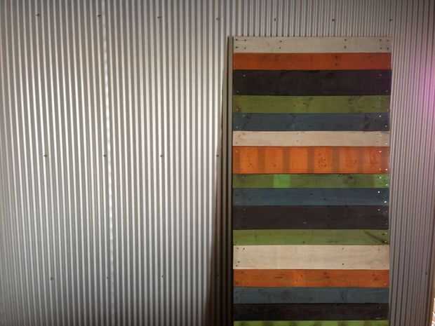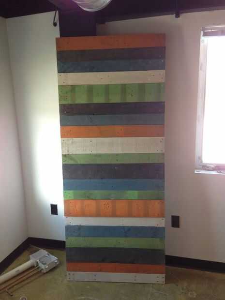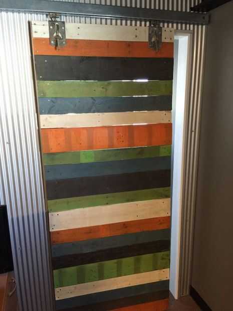 Pared colorida plataforma de madera y puertas corredizas de granero (4 / 4 paso)