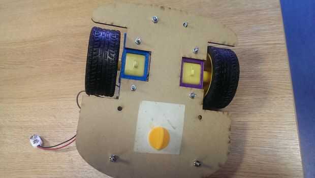 Para atar con alambre los motores; te darás cuenta porque he usado extensiones de los cables del motor, los colores no coinciden con el esquema habitual de color rojo/negro. Los motores son como bombillas en que poder se puede aplicar a ellos en cualquier dirección. Usted no notará la diferencia con una bombilla, pero un motor girará en diferentes direcciones, si una batería se conecta todo en él. Cuando usted enciende el robot más tarde de lo predeterminado (en el código) es impulsar. Si esto sucede no en realidad hay algunos métodos de corregir esto para que no se preocupe!