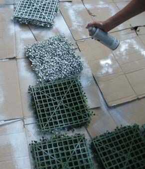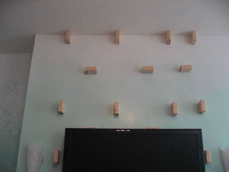 El boj encuentra en la parte superior una capa de 1/8" base de la espuma en bloques de corte de 2 x 4, que luego se pegan a la pared. La ventaja de esto es doble. Uno, el pegamento se rasque si tienes que mover y te quedan con la obligación de volver a pintar. En segundo lugar, funciona para aquellos que no tienen las capacidades para construir un marco de madera grande - esta estructura es temporal pero muy robusta!