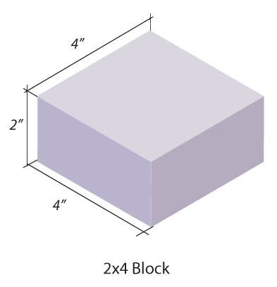 Corte su abajo de 2 x 4 en una serie de bloques de 4" de largo. [Utilizamos 20] El corte 4" no necesita ser perfectamente exacta como va pegando los lados sin cortar la pared y la base de la espuma. Elegimos 4" ligereza y facilidad.